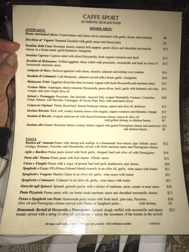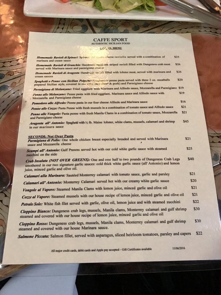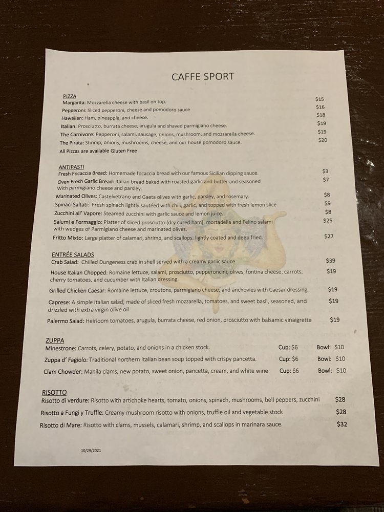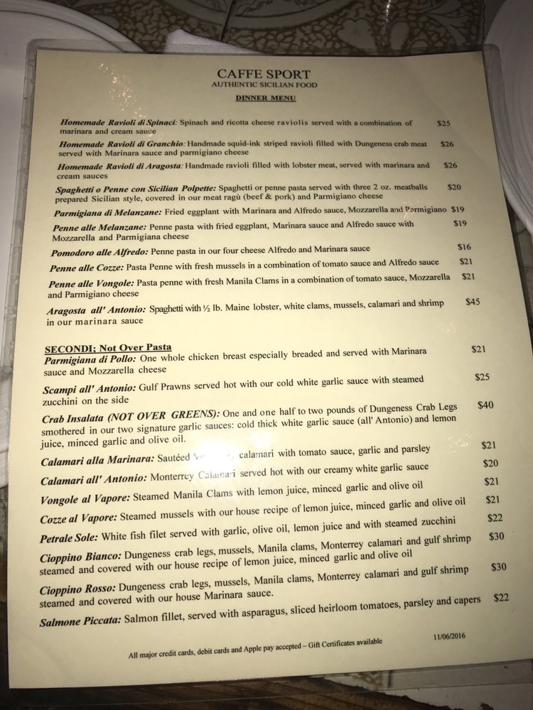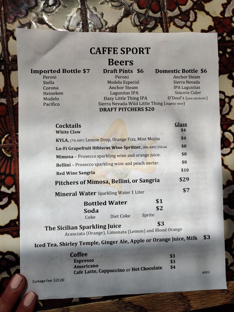 Introducing Caffe Sport, a North Beach tradition serving up traditional Sicilian dishes with great service. The cozy ambiance and prompt service make dining here a delightful experience. The menu features standout dishes like Margarita Pizza, Fritto mixto, and House Italian Chopped Salad. Customers rave about the tasty Sicilian spicy pasta and delicious rice balls. With a warm decor and outstanding food, Caffe Sport is a gem in the Bay Area dining scene. Don't miss out on the opportunity to enjoy Italian cuisine at its finest in a vibrant neighborhood setting.